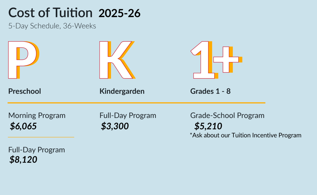 | *Scholarships are available for families with a demonstrated need for students in 1st-8th Grade. |